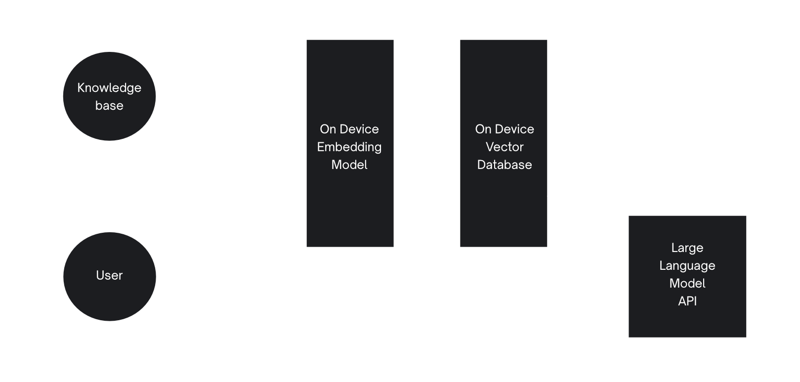 This is the architecture we were able to get to with this project. However, it's worth noting that, on lower-powered devices, such as less powerful mobile phones, it may not be possible to run the LLM locally due to the resources required, so it's also worth considering a hybrid approach.